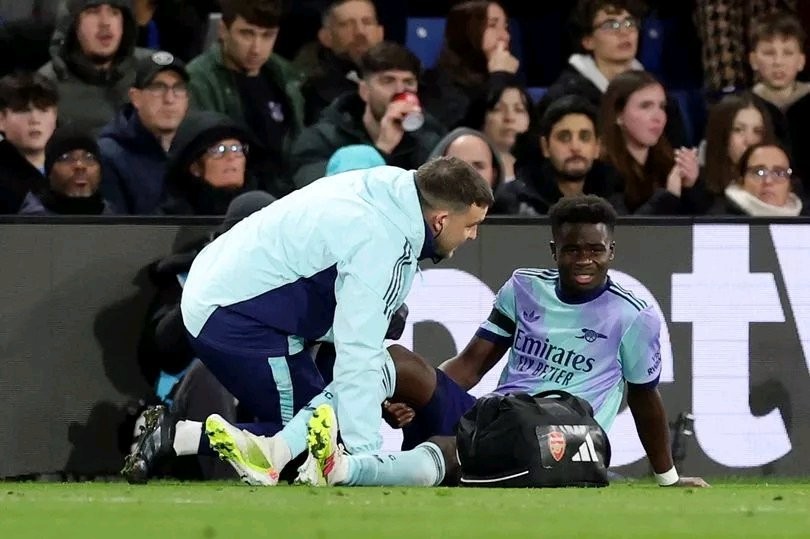 Arsenal star Bukayo Saka picked up a worrying injury during their Premier League win over Crystal Palace on Saturday